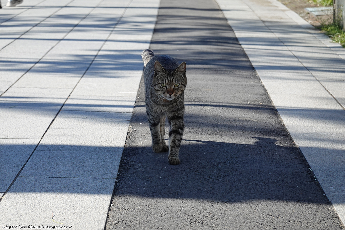 然後就是在橋上遇到野貓。日本的野貓真的都不太怕人,大辣辣的在逛街(可能跟這時間幾乎沒人也有關係啦)。