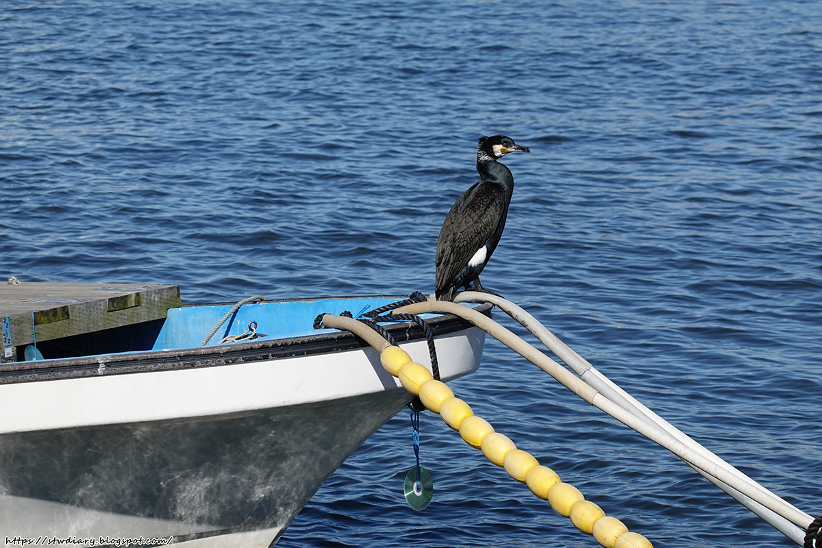 這張則是在漁船(?)(不知道實際功能啦,但私人船應該也就漁船了吧)上看到不知名的神祕鳥兒。在隻鳥站在船的最前方佇立不動很久,我們也拍牠拍得很開心XD